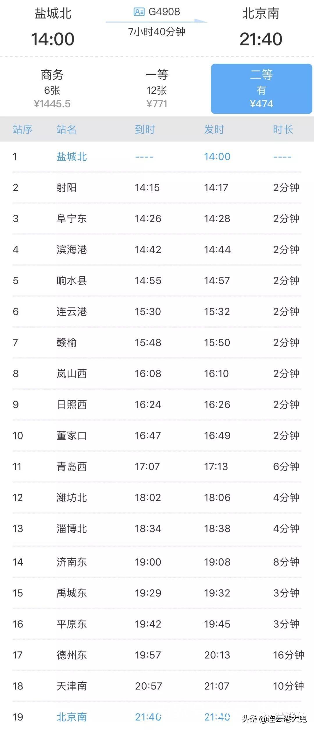 一、目前赣榆直达北京的动车是临客。早在1月5日第一次铁路调图,赣榆在外铁路人“洋子”就曾爆料称:G4908次列车停靠赣榆站,时间是15:50分赣榆开,21:40分到达北京南站。当然,这些车次都是因为春运需要加开的临客。春运结束后,是否还有北京车次停靠赣榆,有待于进一步观察,当然还是希望停靠家门口,不然到连云港站转车又要麻烦。