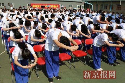 新京报快讯(记者黄颖)“道之所存,师之所存,起,兴……”今日上午,北京市第九十六中学的毕业生们,随着《礼记·大同篇》吟诵的内容,向陪伴自己三年的老师鞠躬行礼,这批初三、高三的学生又完成了一个阶段的学习。
