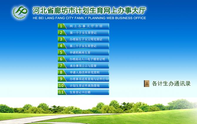 据了解,《河北省廊坊市计划生育网上办事大厅》是为群众办理计划生育相关事项而设立的网上服务平台。它所针对的服务对象主要是夫妻双方或者一方户籍在廊坊市行政区内的人员。