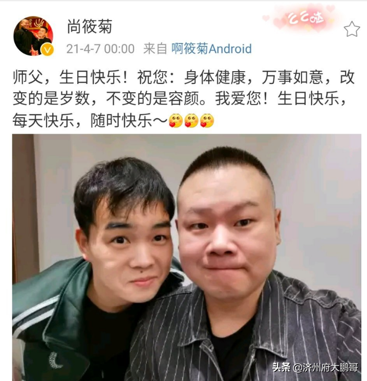 尚筱菊拿旧照片敷衍师父岳云鹏新的生日,正是吃瓜群众们喜闻乐见的情景。