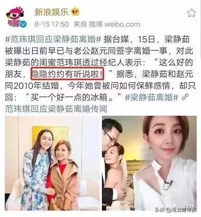 闺蜜这么一闹,梁静茹的公司赶紧站出来回应:没离婚!都知道梁静茹和范玮琪在婚后这几年走得很近,以亲闺蜜相称。曾经范玮琪沦为众矢之的时,梁静茹发微博站出来为闺蜜讲过话: