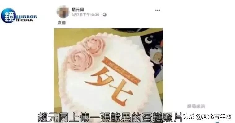 丈夫赵元同更加诡异,七夕时在社交网络上传了一个非常诡异的蛋糕,简直让人摸不清头脑。