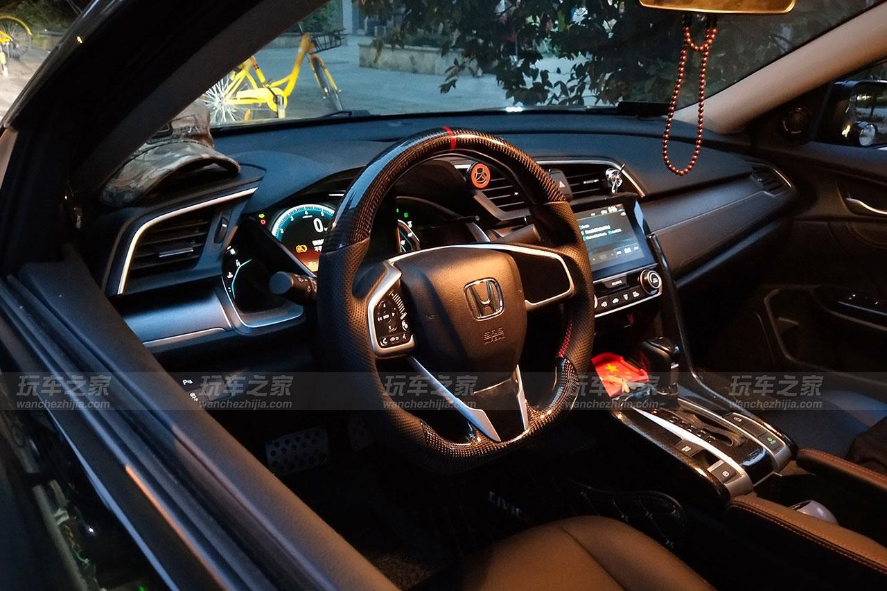内饰方面,只把原厂方向盘改成碳纤维方向盘,其它方面没有改动。