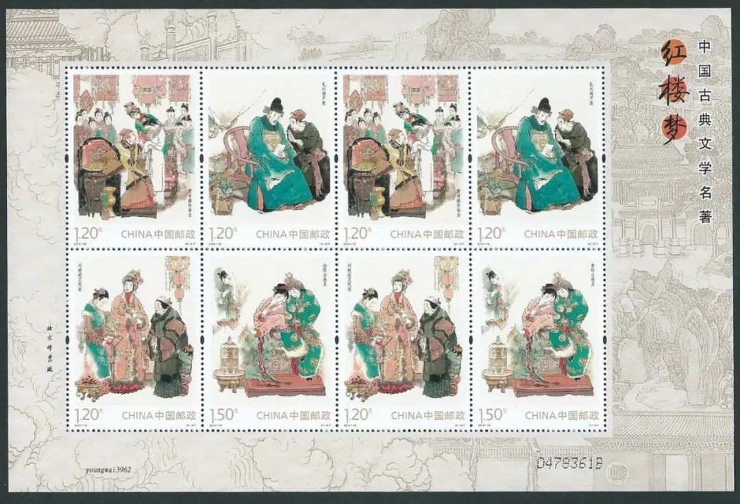 中国邮政于2020年5月17日发行《中国古典文学名著——〈红楼梦〉(四)》特种邮票1套4枚,小型张1枚。