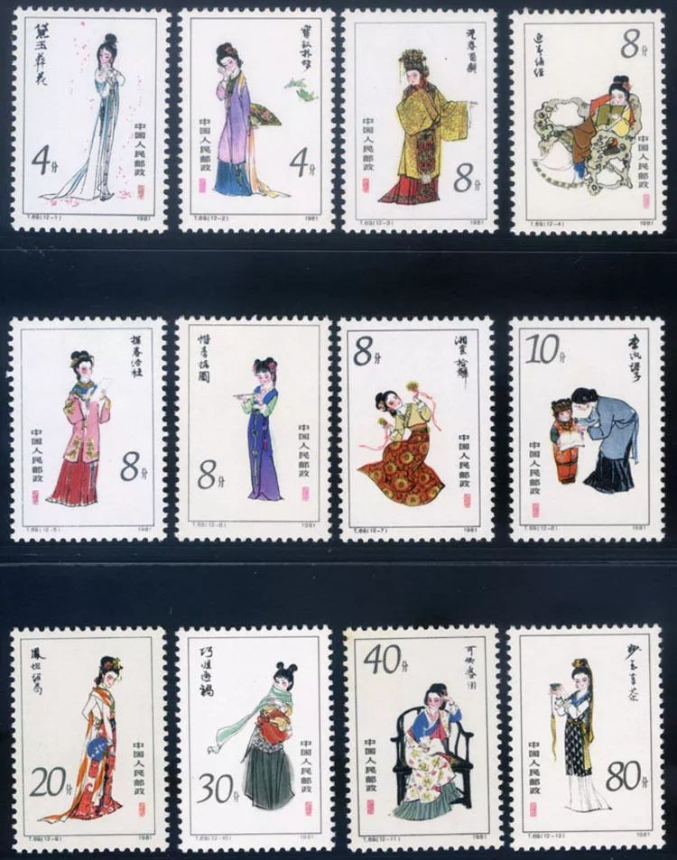 1981年和1982年,我国分两次发行的《红楼梦——金陵十二钗》邮票及小型张,由著名艺术家刘旦宅创作,风流婉转,跟曹雪芹的文字是最般配、最投缘的。
