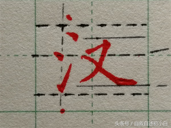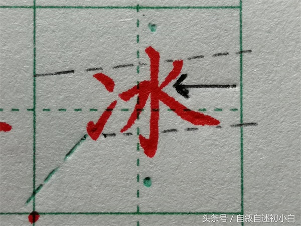 两点水的写法:1从结构上来看,形成了上小下大的结构。2下面的提画托住上面的点画,并且右侧对齐。3要注意点画与提画之间的距离。?