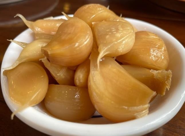 6. 7 天后,糖蒜已经腌制入味,可以拿出来享用了。口感爽脆,味道鲜美,非常适合搭配粥、面、饭等主食食用。