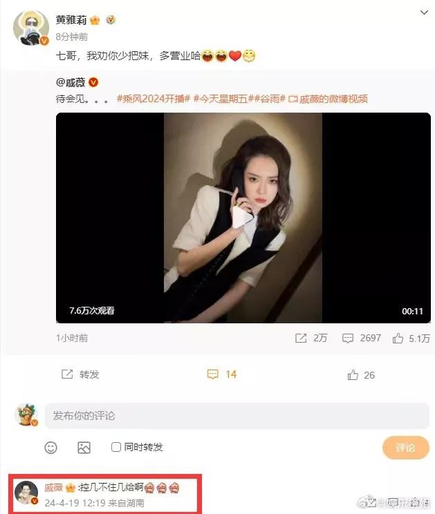 以上就是黄雅莉转发戚薇微博劝其少把妹,戚薇回应控不住自己的魅力的精彩内容。乘风2024即将开播,让我们一起期待戚薇的美酷撩人演绎!快来留言告诉我们你对戚薇的喜爱吧!