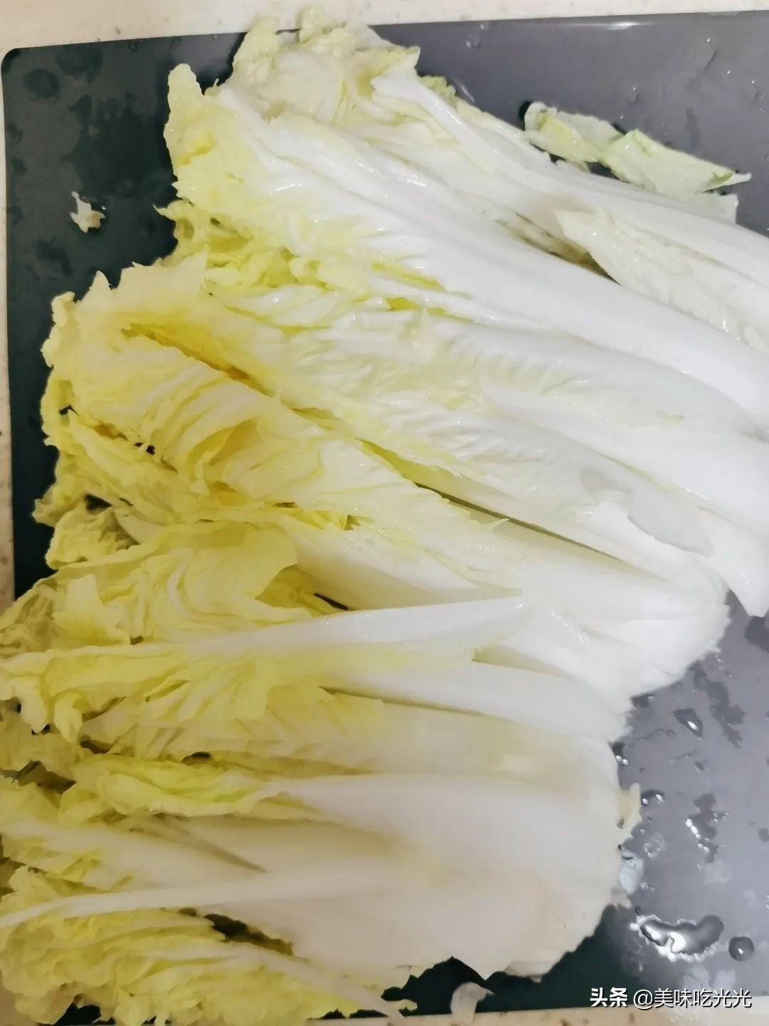 先把娃娃菜洗干净,然后切成细条(方便入口)