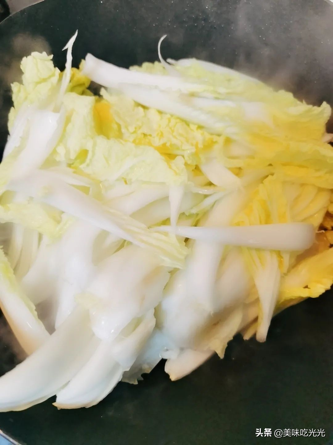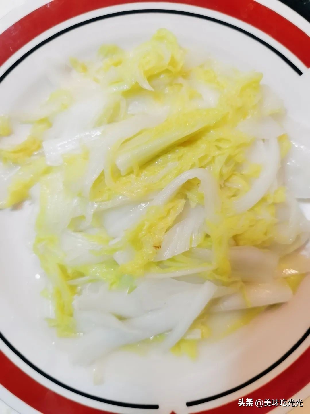 炒软之后,放一点盐,淋些水,加盖焖熟。