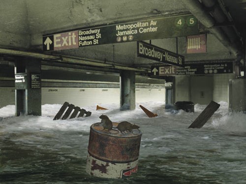 由于持续抽水系统无人看管,城市里的地铁开始被水浸没。