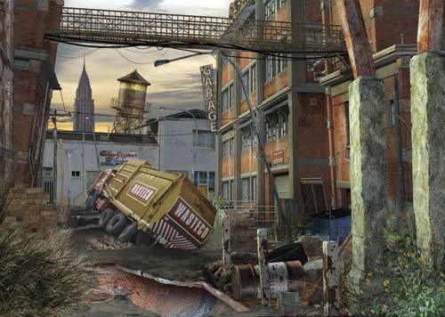 下水道系统已经破坏,城市被水浸没。房屋的屋顶慢慢塌落,有些建筑需要经历数百年之久才会完全倒塌。