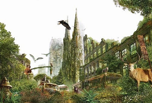 城市被森林覆盖。人类留下的核弹头,外壳被腐蚀需要等到5,000年后,放射性钚239元素进一步污染环境。1.5万余年后,地球开始迎接新的冰河时期。