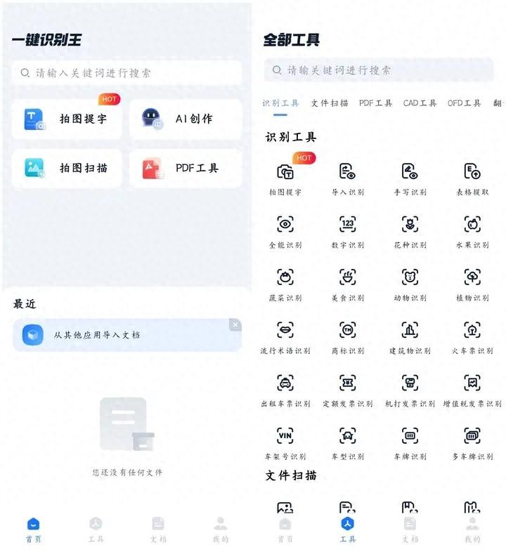 一个功能强大的专业识别软件,涵盖了多种实用功能,包括拍图扫描、拍图题字、手写识别、导入识别、表格提取、全能识别、数字识别、花种识别等,软件分类一目了然,打开就能找到需要的功能