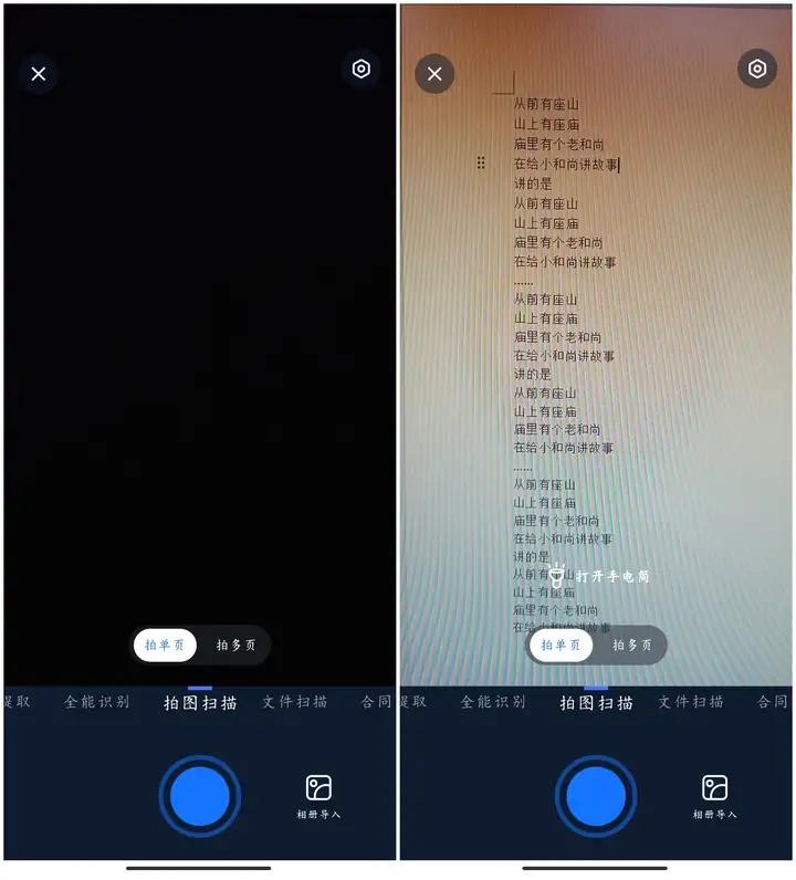操作很简单,点击手机扫描仪,根据需要选择拍单张或者多张,点击按钮拍摄需要识别的内容,,软件就会自动识别图片,识别成功之后点击保存/导出即可