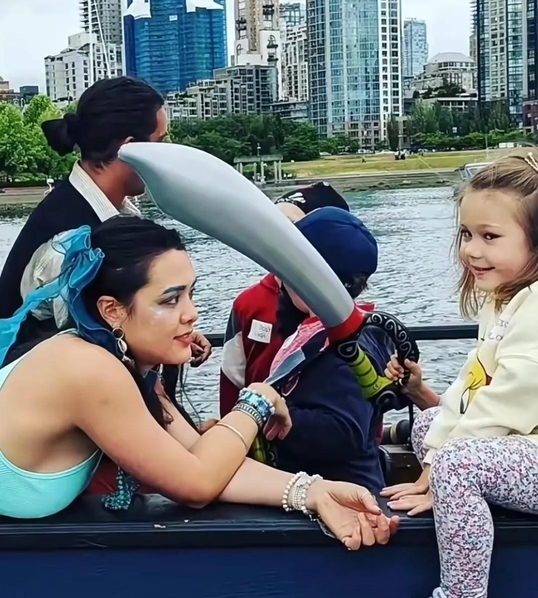 Yasmine的亲生父亲那边,似乎也已经再婚,晒照中,有一张图片似乎是Yasmine与爸爸那边再生的弟弟妹妹的合照。