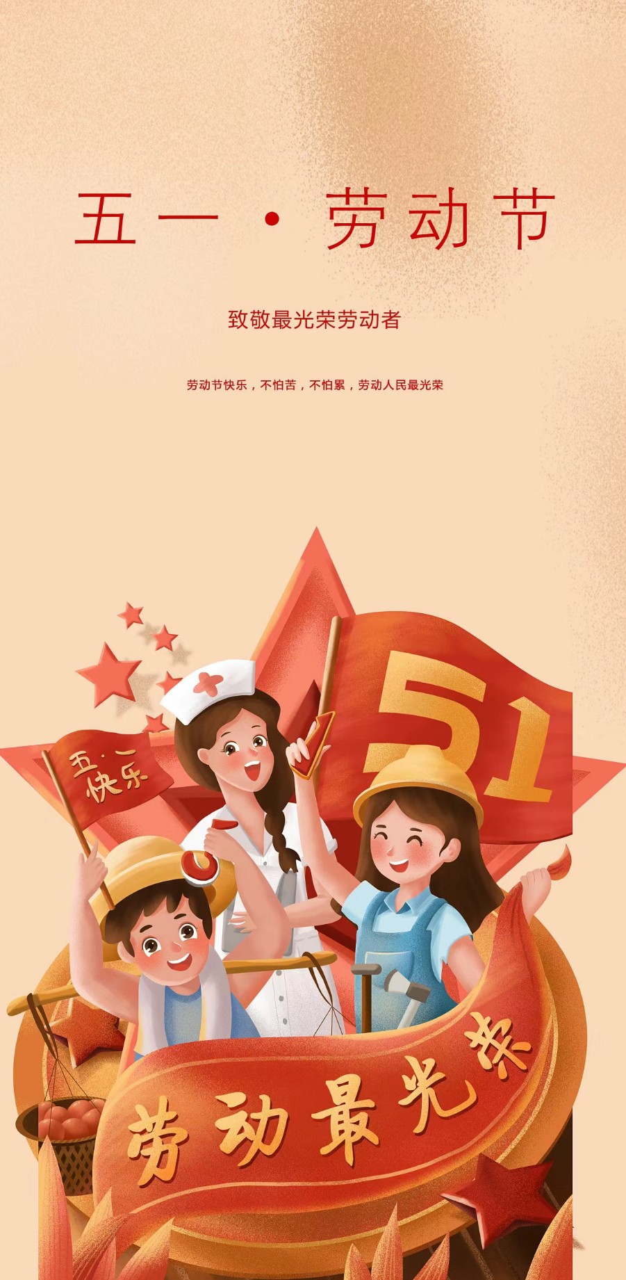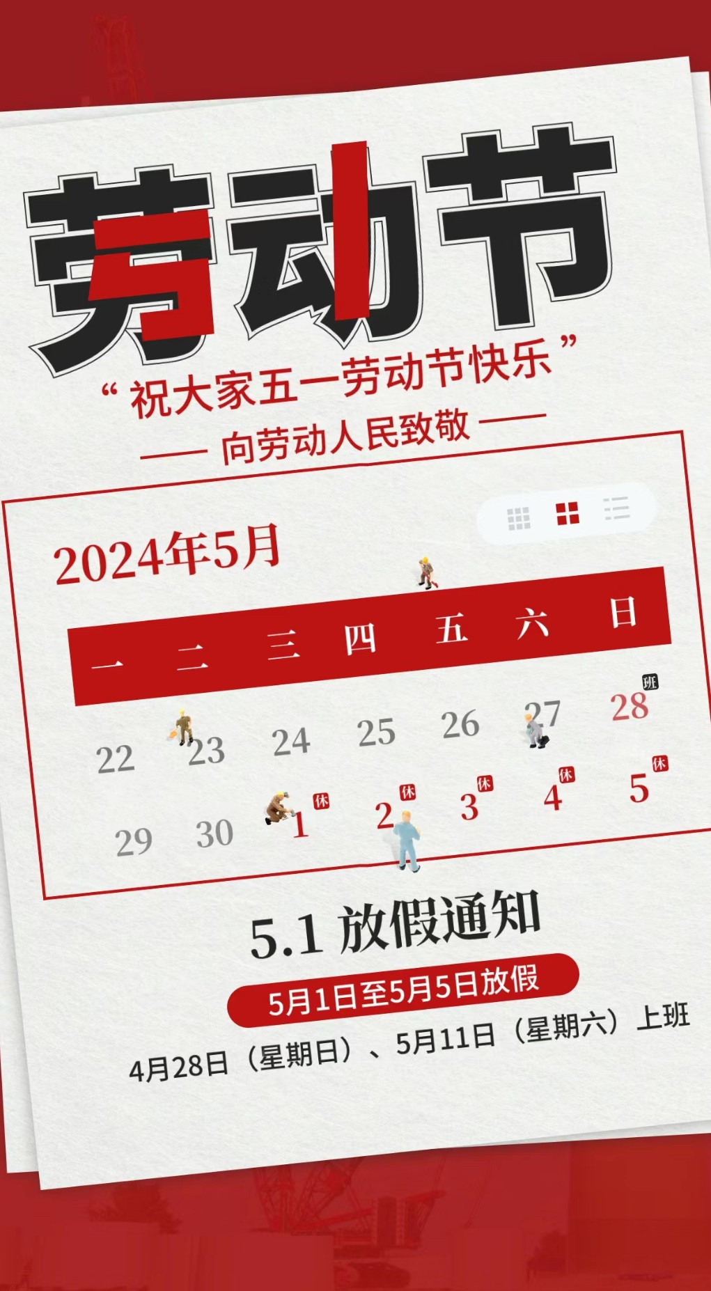 在此提前祝大家节日快乐,也向每一位辛勤付出,努力工作的劳动者们表示衷心的感谢,感谢你们的辛苦付出,为你们的敬业精神点赞!