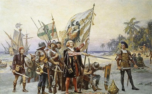 1492年,西班牙国王费迪南德二世和女王伊莎贝拉一世资助了哥伦布进行探险航行,希望能够找到一条通往亚洲的新航路。哥伦布于同年8月3日从西班牙的帕洛斯港出发,带领三艘船只--圣玛丽亚号、努涅斯特拉号和皮尼奥号,开始了长达两个月的航行。