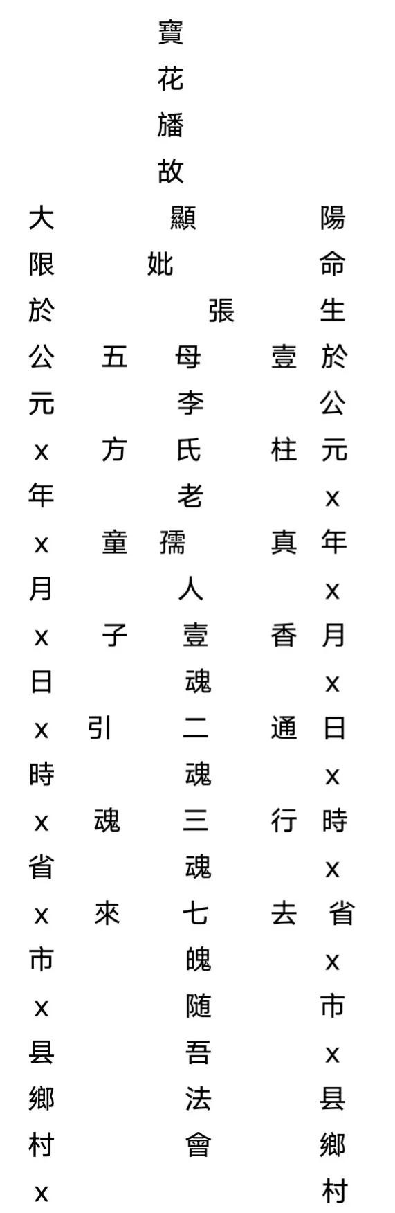 引魂幡,也是川东殡葬文化中最重要的一环。首先要说明这个东西的规矩:家师专门交待过:长不超过五尺二,宽不能超过二尺八。这东西做好写好之后,都是放在灵堂里的。在要出殡的时候,都是有死者的嫡亲子孙扛着的走在前面引路的。所以这个东西也是绝对马虎不得的。