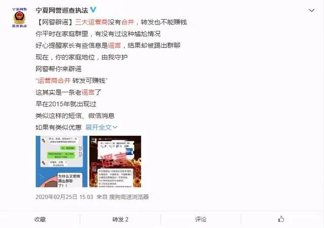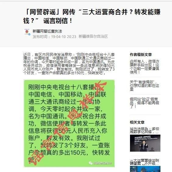 三大通信公司合并转发有奖金?纯属谣言