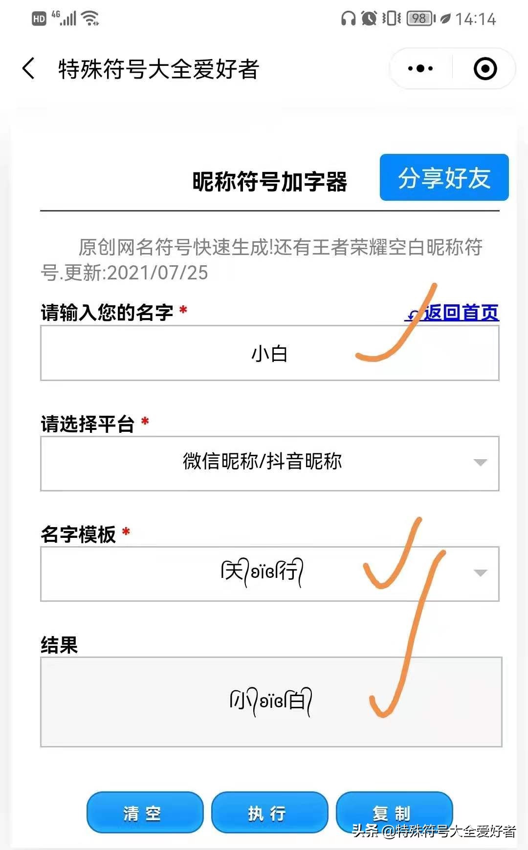 总结:特殊网名生成器,有很多的PC版,但是手机端上面比较少,特殊符号大全爱好者是比较好用的手机版的特殊网名生成器,还是非常好用的哦