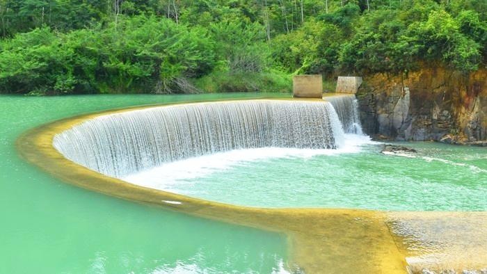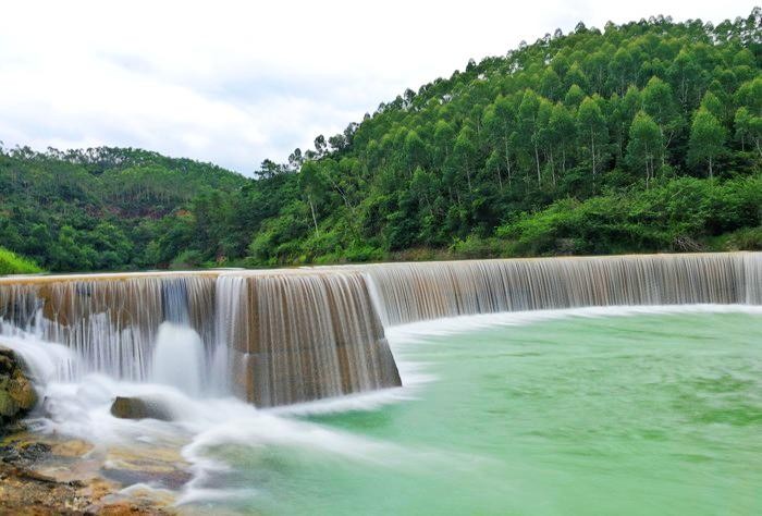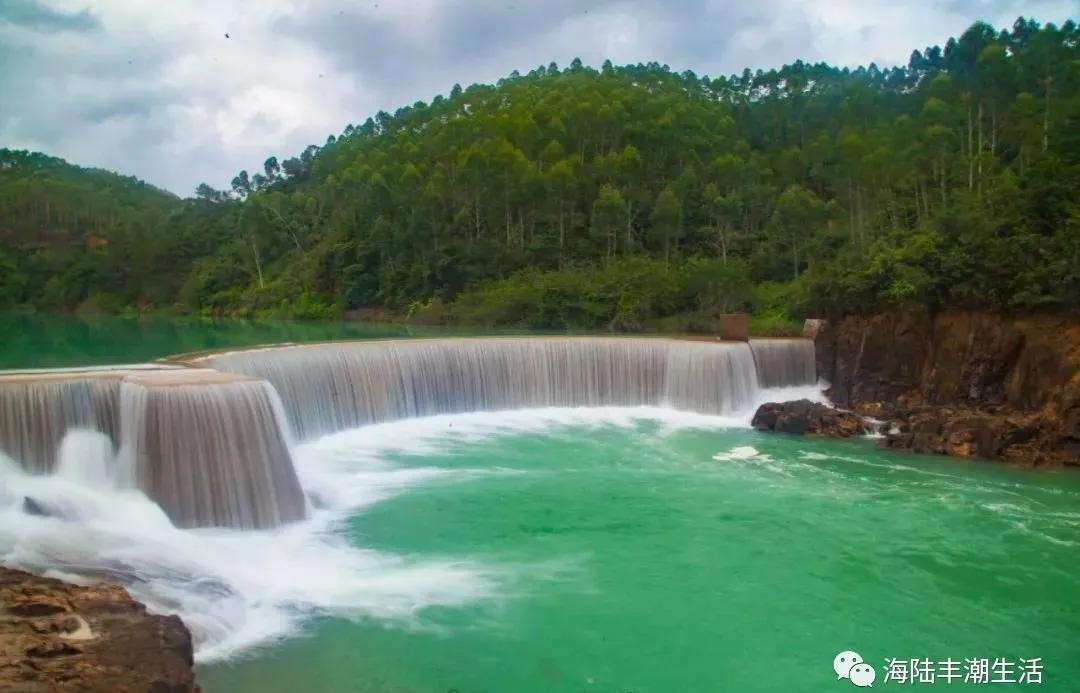 陂洋半月湾、坐落于陆丰市陂洋镇三岭村三板桥旁边、三十多年前由人工建成长约36米的拦水坝、用于三岭村周边农田灌溉。