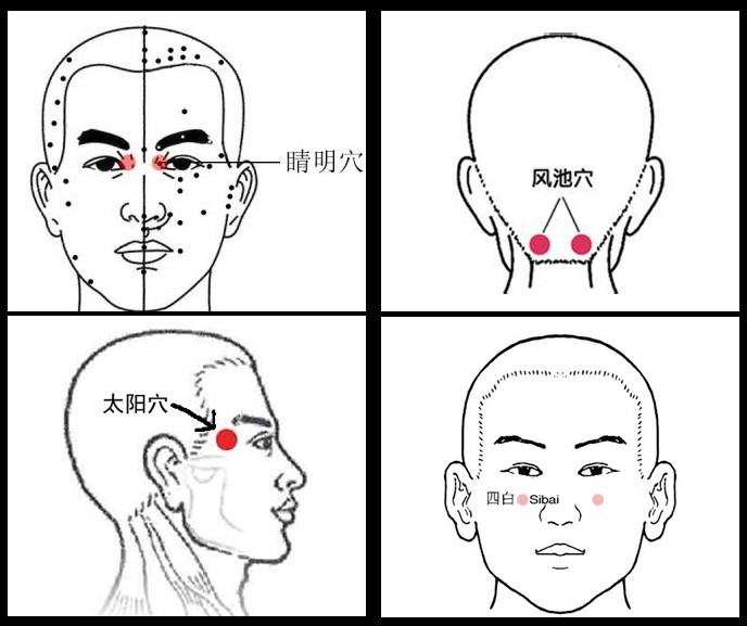 睛明穴、太阳穴、四白穴、风池穴的日常保健养生功效
