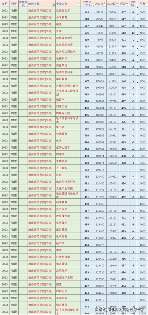 河北省高考2023年唐山师范学院各专业投档分数