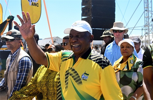 1月11日,在南非开普敦,南非非洲人国民大会(非国大)主席拉马福萨向支持者挥手致意。新华社发(恩齐卡·恩赞德 摄)