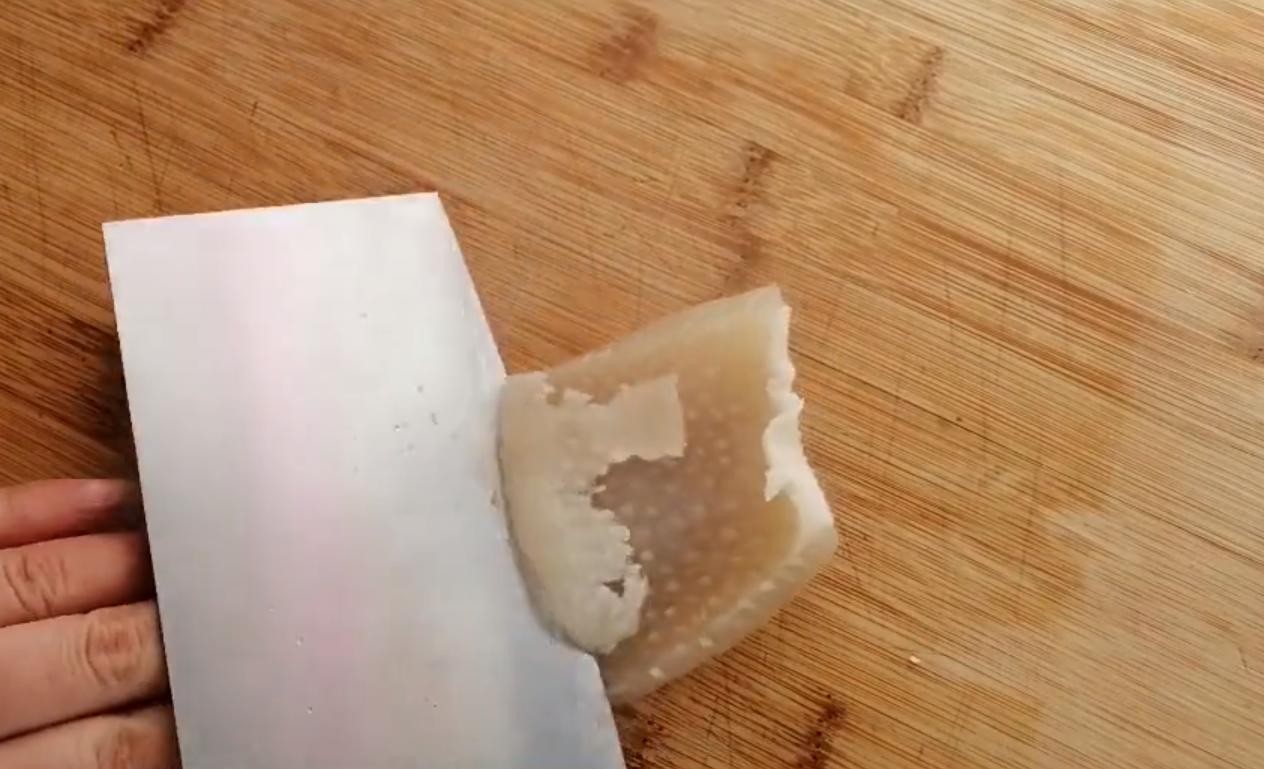 2,焯水后的猪皮刮去油脂以及猪皮表面残留的猪毛