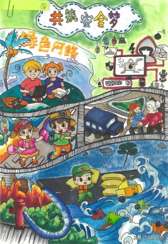 为增强学生安全意识,北京市应急管理局和北京少年报联合开展了“大手牵小手,共筑安全梦”2021年北京市小学生防灾减灾作品创作征集活动,活动得到了广大少先队员及辅导员的积极参与,活动共收到全市16区46所学校1100余幅作品。经评审团对初评后的100余幅作品进行了终评,一等奖:12名;二等奖18名;三等奖24名;优秀奖30名;优秀指导教师55名;优秀组织奖36所学校。