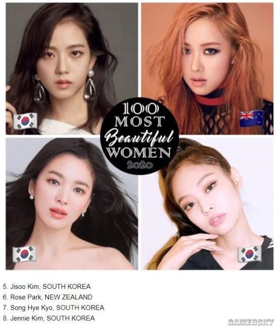 BLACK PINK成员Jisoo和Rose排名第5、6、8位,宋慧乔第7名。