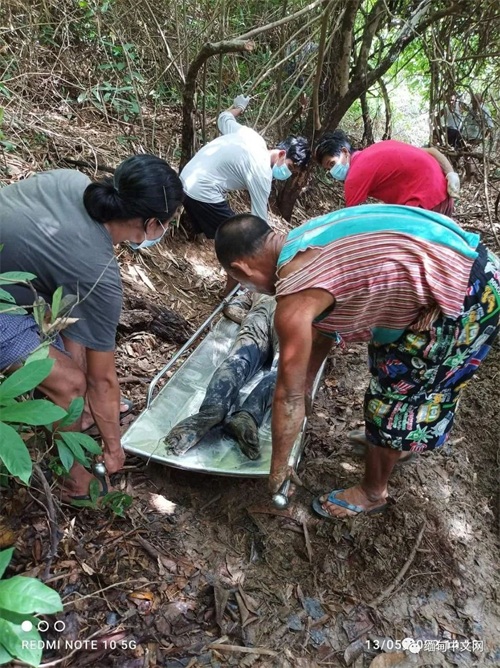 公司得知情况后,5月13日比林镇社会救援组、镇管理组、借贷公司负责人以及职员们,前往现场挖掘出了郭昂迪哈的遗体。