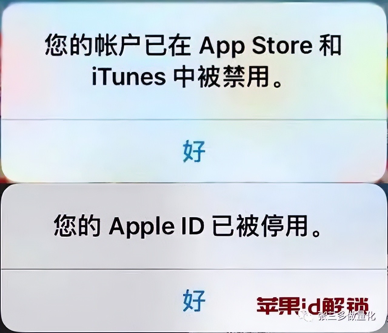 个别工作室因为有很多苹果设备,但是苹果id却只有一个,这样也会导致苹果id停用,会出现以下几种提示: