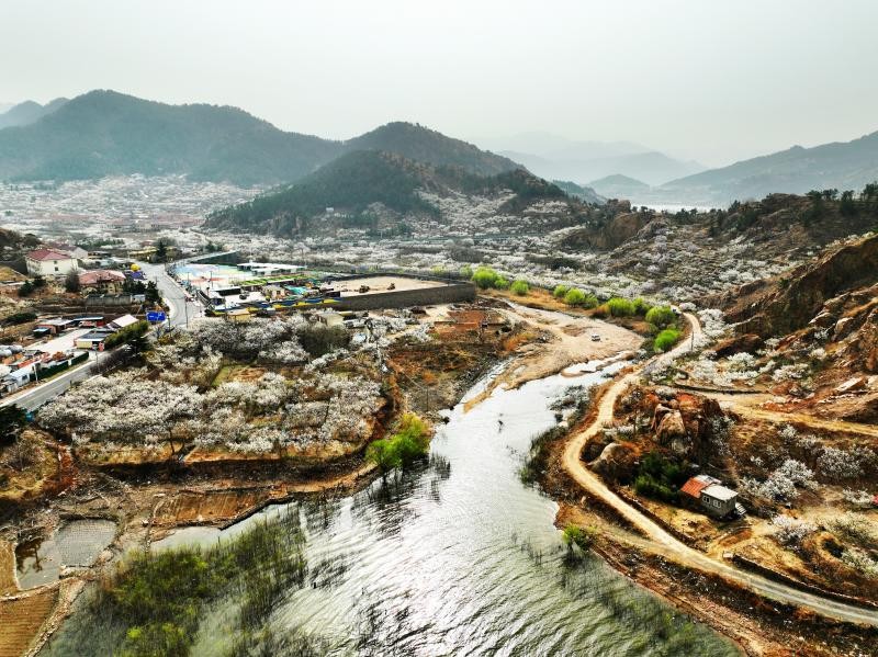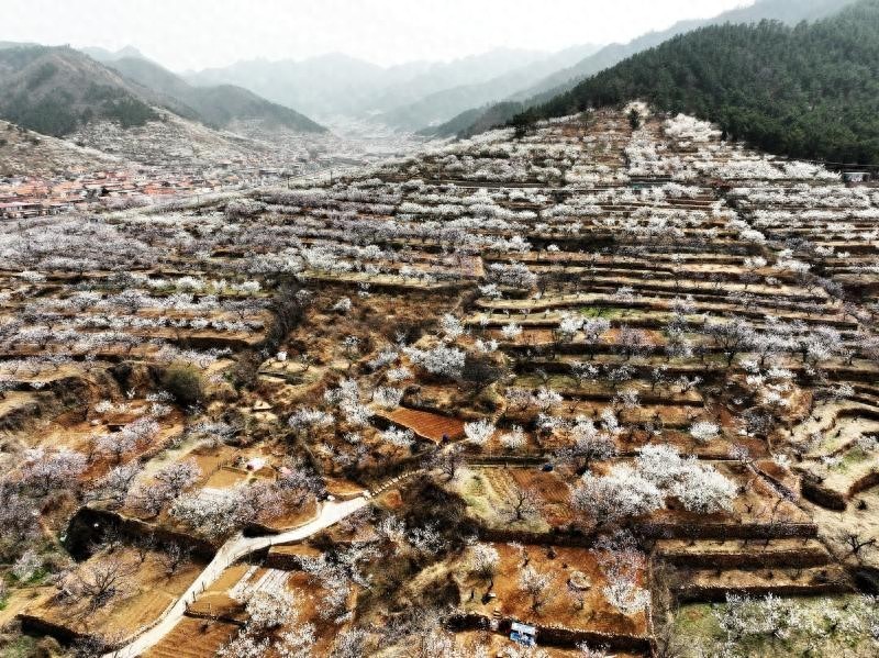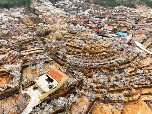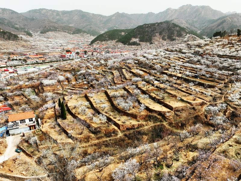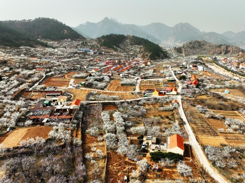 近日,在山东省青岛市城阳区夏庄街道山色峪乡村振兴齐鲁样板省级片区,4千余亩樱桃花、杏花漫山绽放,美如花的海洋。