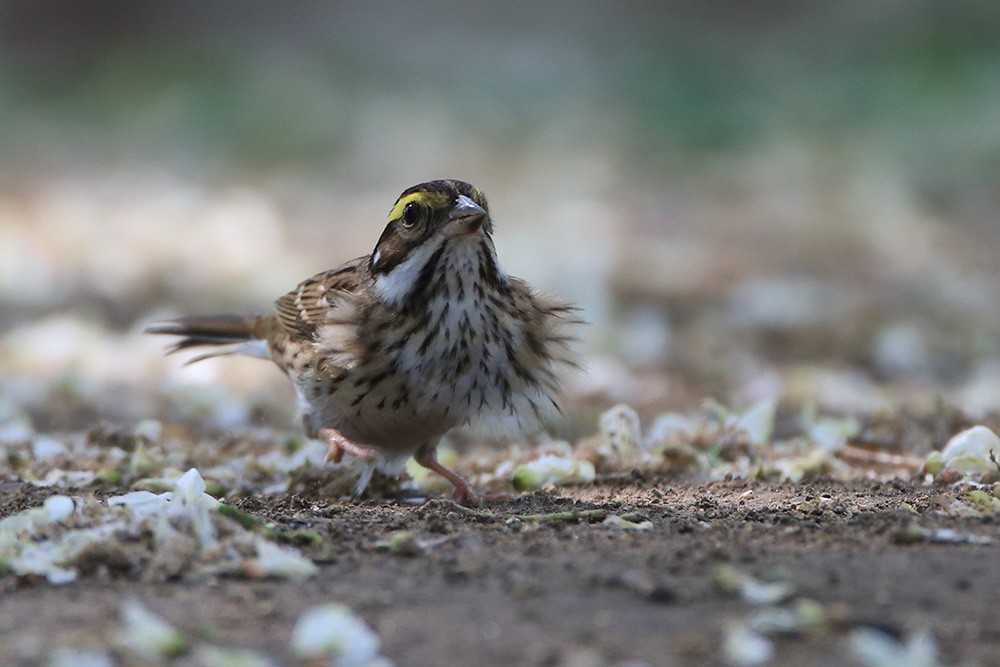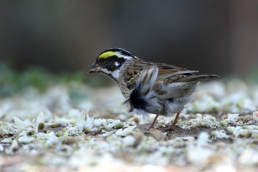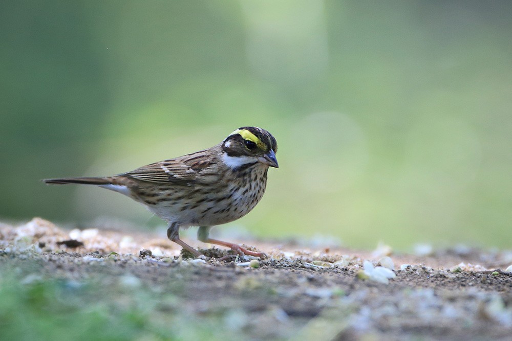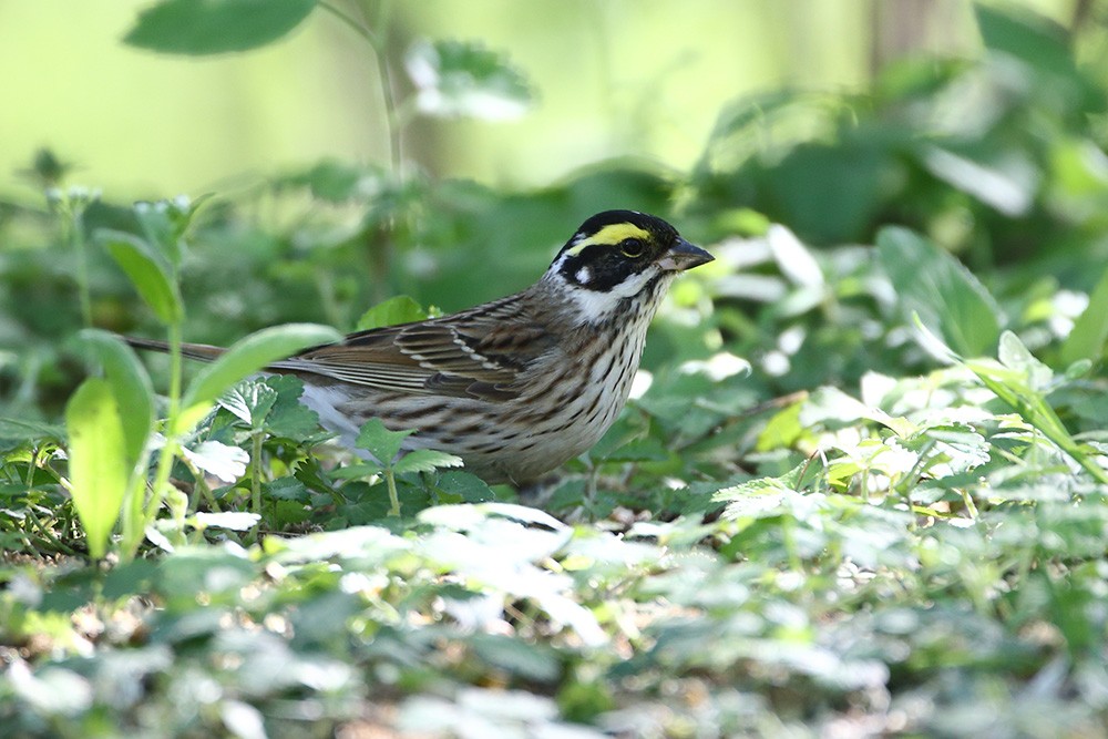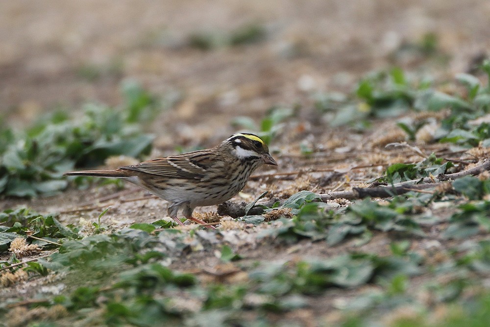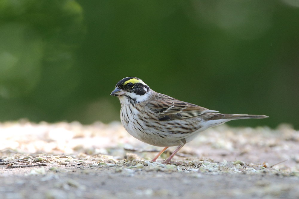 雄鸟头部黑色具条纹,有显著的鲜黄色眉纹。下体更白而多纵纹,翼斑也更白,腰更显斑驳且尾色较重。
