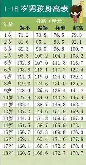 2019最新1~18岁男孩女孩身高标准表公布!你的身高达标吗