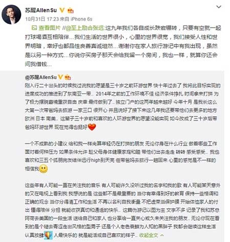 苏醒微博截图