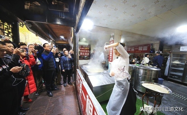 11月19日, 四川成都, 继“妖娆拉面哥”之后, 黄龙溪古镇一个身材高挑的古装美女, 一边跳舞一边挥甩着手中的面条被赞“甩面仙女 ” 走红网络。(来源: 红叶/视觉中国)