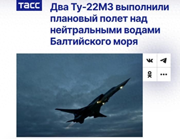 中新网12月18日电 据塔斯社当地时间12月17日报道,俄罗斯国防部发布消息称,俄空天军两架图-22M3远程轰炸机在波罗的海中立水域上空执行了计划内的飞行任务,飞行持续超过5个小时。