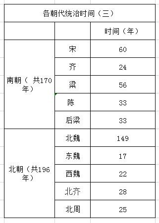 下图为南北朝各朝代统治时间