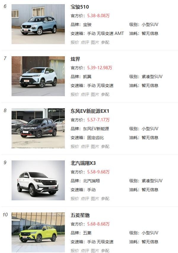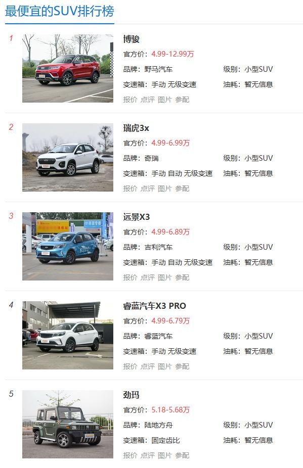 盘点最便宜的10款SUV,最低5万就能买到,堪称价廉物美