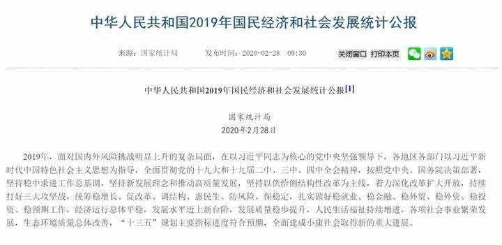 国家统计局今天发布的《中华人民共和国2019年国民经济和社会发展统计公报》显示:2019年末全国大陆总人口140005万人,比上年末增加467万人。2019全年出生人口1465万人,出生率为10.48‰;死亡人口998万人,死亡率为7.14‰;自然增长率为3.34‰。
