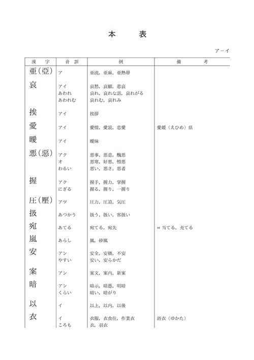 日语常用汉字对照表,可下载