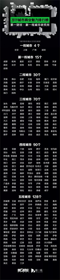 榜单显示,2019年15座新一线城市依次为成都、杭州、重庆、武汉、西安、苏州、天津、南京、长沙、郑州、东莞、青岛、沈阳、宁波、昆明。头部4座新一线城市的位次相对稳定,无锡则继2017年之后再一次跌出这一梯队。
