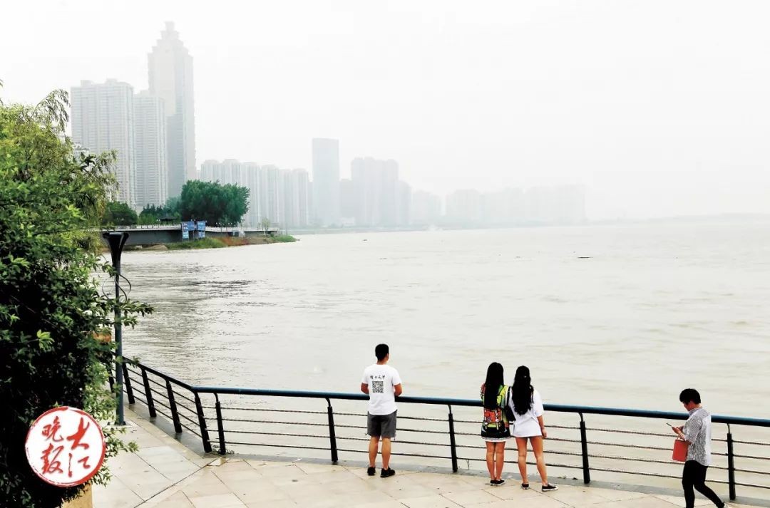 受长江流域降雨影响,芜湖长江段水位上涨明显。昨天下午2点55分,长江弋矶山水文站的实时水位达8.11米,创今年的最高水位。图为市民在滨江公园观景游玩。