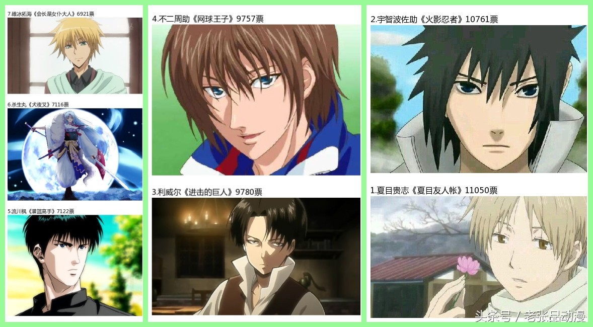 1到8:夏目贵志--宇智波佐助--科威尔--不二周助--流川枫--杀生丸--碓冰拓海