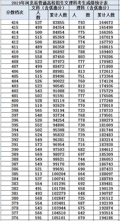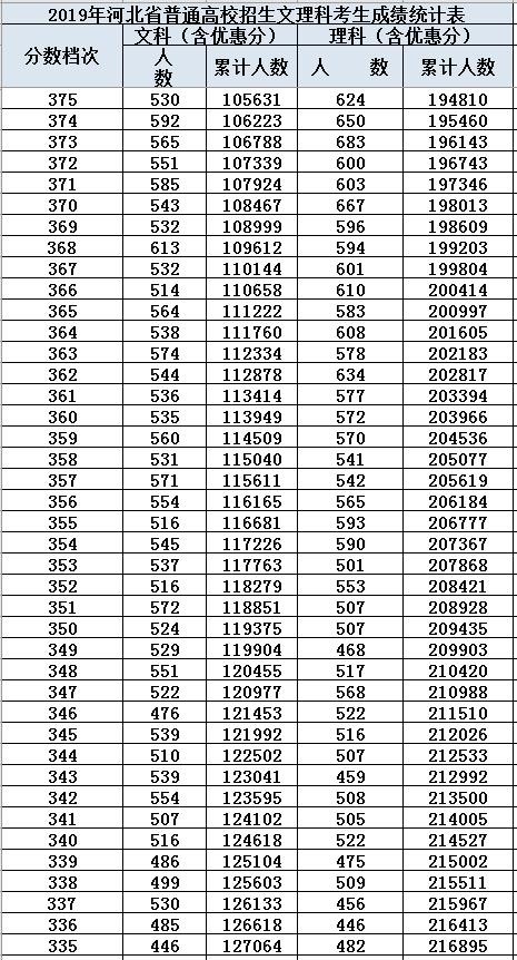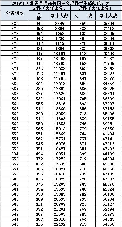 河北2019一分一档清晰版,对比今年的招录成绩才能更有效果