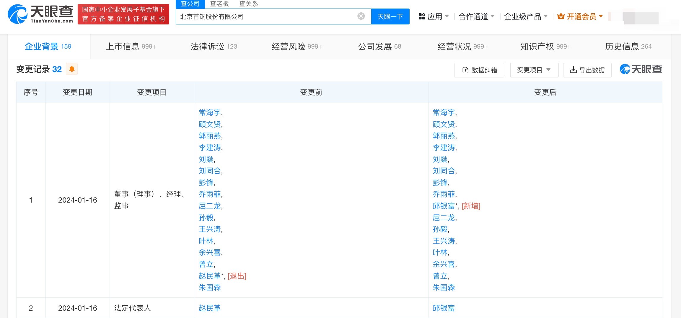 天眼查App显示,近日,首钢股份(000959)发生工商变更,赵民革卸任法定代表人、董事长,由邱银富接任。此前,首钢股份发布的公告显示,赵民革因工作调整辞去董事长、董事等职务,公司董事会选举邱银富为董事长。北京首钢股份有限公司成立于1999年10月,注册资本约77.95亿人民币,经营范围含经营电信业务,保险代理业务,保险经纪业务,钢铁冶炼,钢压延加工,烧结矿、焦炭、化工产品制造等,由首钢集团有限公司、中国宝武钢铁集团有限公司、北京京投投资控股有限公司等共同持股。