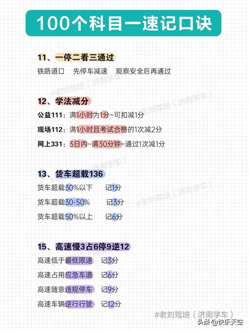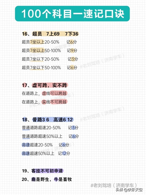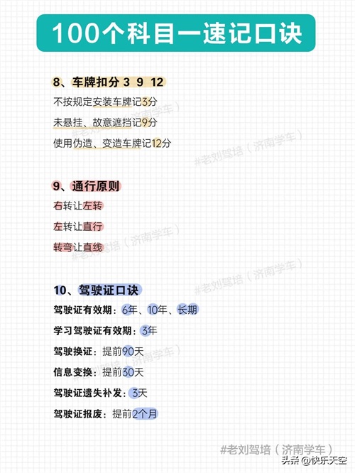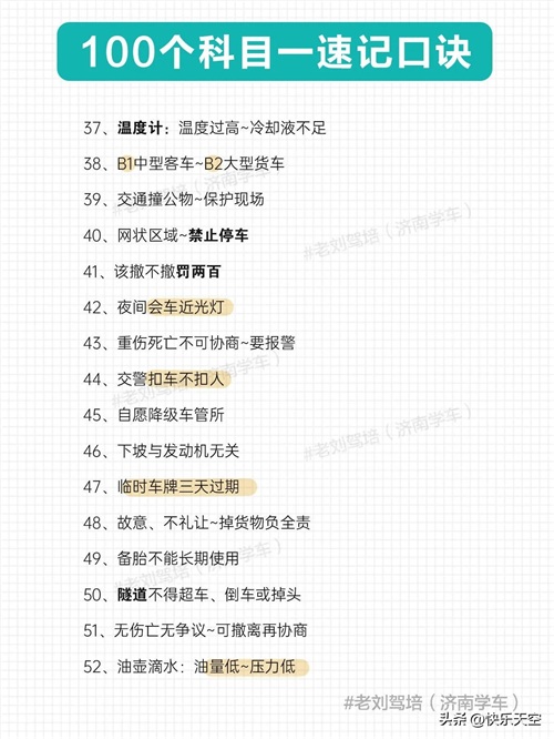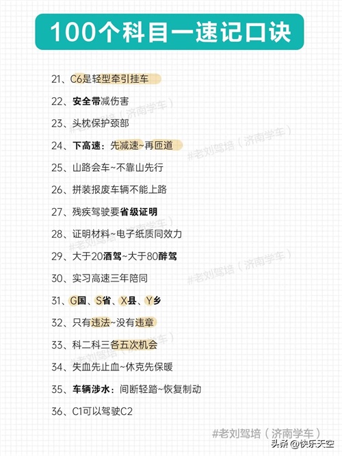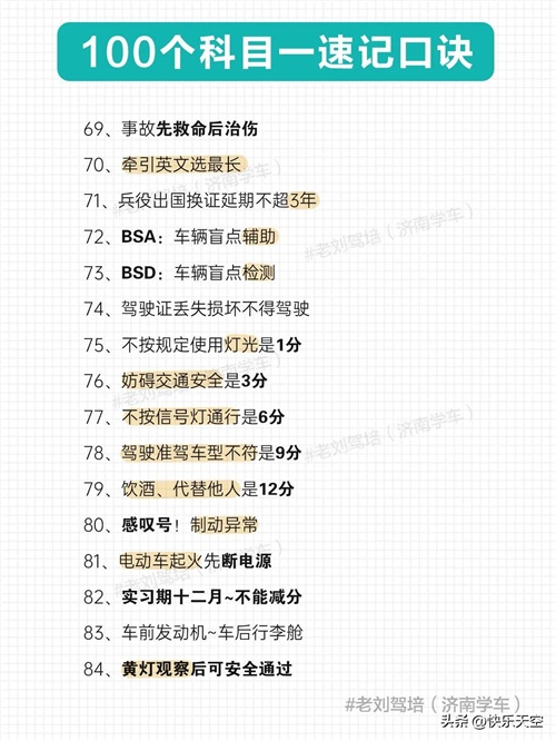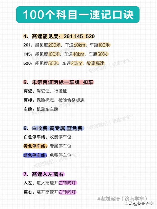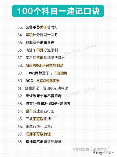 100个科目一速记口诀,考满分很简单